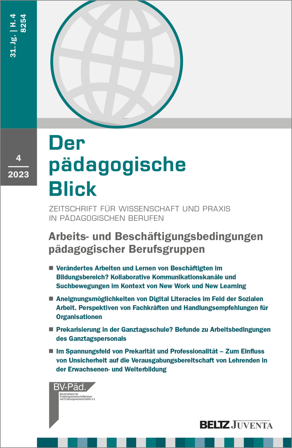 Der pädagogische Blick veröffentlicht erziehungswissenschaftliche Beiträge zu innovativen Ansätzen und Themen sowie aktuellen Debatten aus Disziplin und Profession.