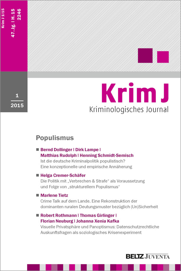 Kriminologisches Journal setzt sich kritisch mit Strukturen und Maßnahmen sozialer Kontrollinstanzen auseinander.