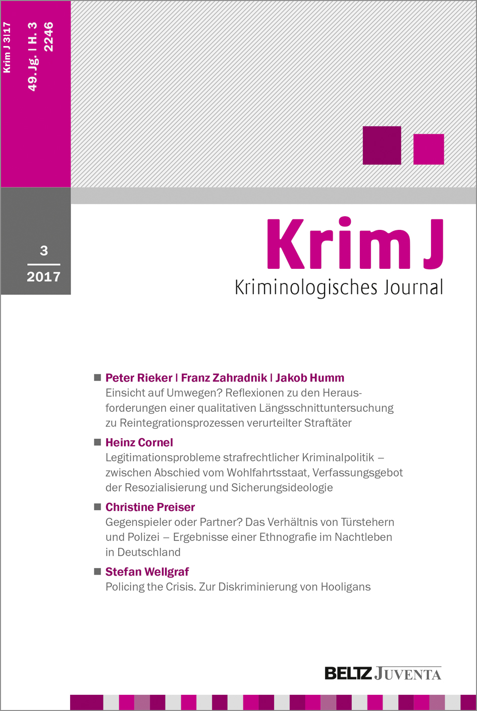 Kriminologisches Journal setzt sich kritisch mit Strukturen und Maßnahmen sozialer Kontrollinstanzen auseinander.