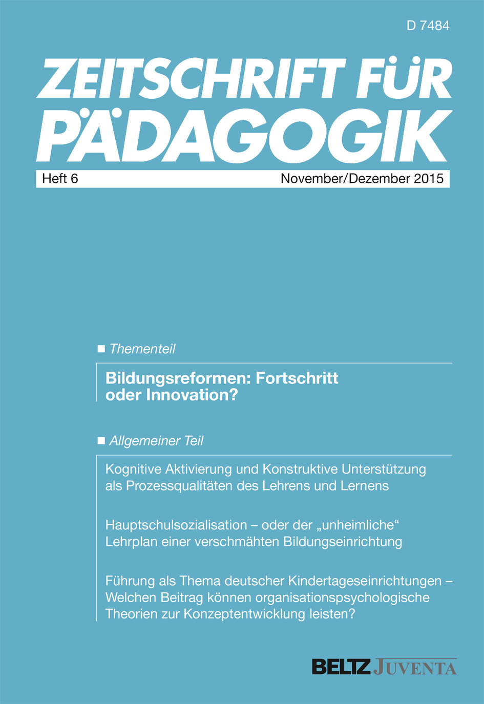 Zeitschrift für Pädagogik (ISSN 0044-3247), Ausgabe 06, Jahr 2015, Seite - 0