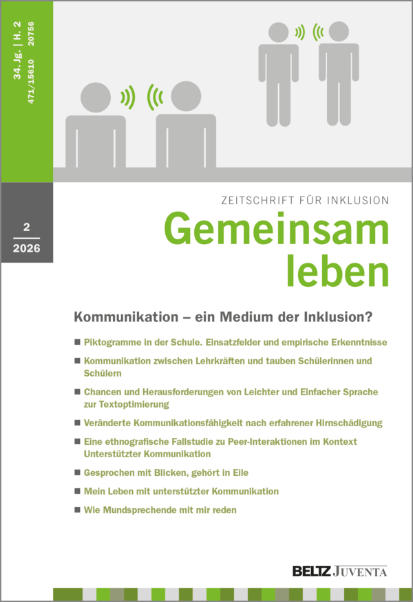 Die Zeitschrift Gemeinsam Leben ist in den 1990er Jahren aus dem gemeinsamen Engagement von Wissenschaftler:innen, Angehörigen von Menschen mit Behinderung und Praktiker:innen für eine inklusive Gesellschaft hervorgegangen. In dieser Tradition versteht sie sich auch heute als kritische Beobachterin gesellschaftlicher, politischer und fachlicher Entwicklungen. Betroffene, Eltern, Angehörige, Fachleute aus Wissenschaft und Praxis finden in Gemeinsam Leben aktuelle Fachinformationen und ein lebendiges Diskussionsforum zu unterschiedlichsten Fragen der Umsetzung von Inklusion. Die gemeinsame Bildung und Erziehung von Kindern und Jugendlichen mit und ohne Behinderung sowie die Stärkung gleichberechtigter und selbstbestimmter Teilhabe aller Menschen sehen die Herausgeber:innen als unverzichtbaren Bestandteil eines inklusiven Gemeinwesens an.