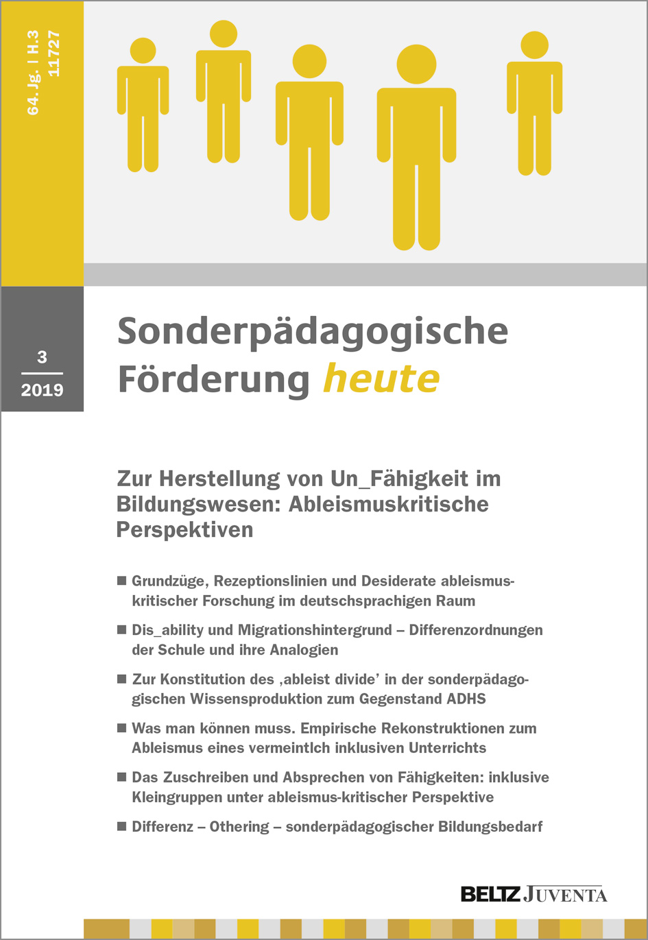 Sonderpädagogische Förderung heute ist ein Forum der Fachdiskussion in Wissenschaft und Praxis, das sich der pädagogischen Rehabilitation in der gesamten Lebensspanne widmet. Ein besonderer Akzent liegt dabei auf Fragen der Teilhabe und Inklusion.