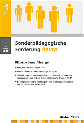 Sonderpädagogische Förderung heute ist ein Forum der Fachdiskussion in Wissenschaft und Praxis, das sich der pädagogischen Rehabilitation in der gesamten Lebensspanne widmet. Ein besonderer Akzent liegt dabei auf Fragen der Teilhabe und Inklusion.