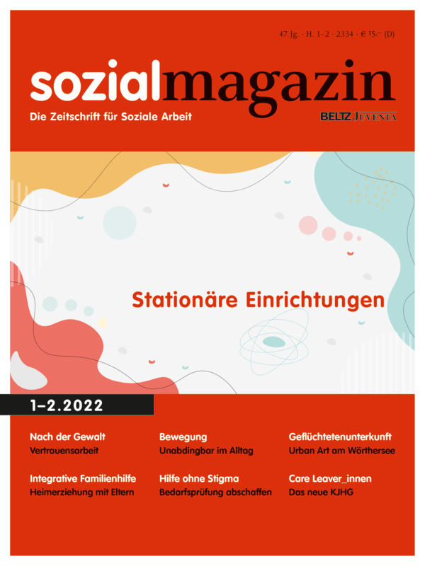 Das Themenheft »Stationäre Einrichtungen« widmet sich den vielfältigen Konstellationen stationärer Einrichtungen als Handlungs- und Arbeitsfelder der Sozialen Arbeit. Die Autor_innen geben Einblicke in Potenziale, Ambivalenzen sowie Herausforderungen sozialarbeiterischen Agierens in umfassenden Settings von Betreuung und Umsorge und greifen dabei gegenwärtige Diskurslinien der Sozialen Arbeit auf.
