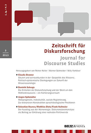 Zeitschrift für Diskursforschung 3/2013 (2013), Beltz Verlagsgruppe, 69 469 Weinheim, ISBN: 9783779925453