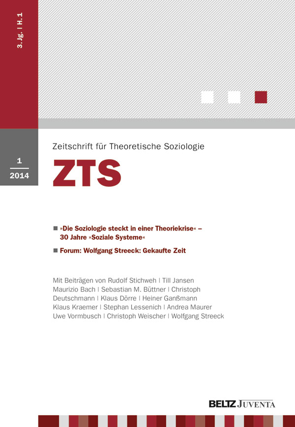 Die ZTS – Zeitschrift für Theoretische Soziologie ist die erste Zeitschrift im sozialwissenschaftlichen Bereich, die sich ausschließlich der Theoriedebatte widmet. Ziel ist es, ein unabhängiges Organ zu schaff en, das der Vielfalt der theoretischen Ansätze einen Ort gibt.