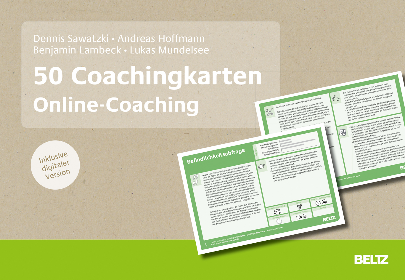 Die Karten beschreiben vorderseitig die Methode in ihrem Ablauf und geben Hinweise für die Umsetzung im Online-Coaching. Auf der Rückseite werden ein Anwendungsbeispiel sowie weiterführende Ideen zur Variation der Methode skizziert. Das Booklet beleuchtet die Besonderheiten von digital gestütztem Coaching und gibt allgemeingültige Praxistipps für den Online-Coach und dessen Arbeit mit Einzelpersonen und im Gruppensetting.