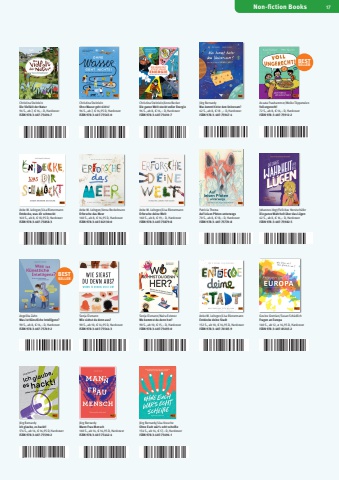 Non-fiction Books 17 Christina SteinleinDie Vielfalt der Natur94 S., ab 7, %u20ac 16,%u2013 D, HardcoverISBN 978-3-407-75694-7Christina SteinleinOhne Wasser geht nichts!96 S., ab 7, %u20ac 16,95 D, Hardcover ISBN 978-3-407-75565-0Christina Steinlein/Anne BeckerDie ganze Welt steckt voller Energie96 S., ab 8, %u20ac 16,%u2013 D, Hardcover ISBN 978-3-407-75610-7J%u00f6rg BernardyWas kommt hinter dem Universum?62 S., ab 8, %u20ac 18 ,%u2013 D, Hardcover ISBN 978-3-407-75947-4Assata Frauhammer/Meike T%u00f6pperwienVoll ungerecht!72 S., ab 8, %u20ac 16,%u2013 D, HardcoverISBN 978-3-407-75912-2BESTSELLERAngelika ZahnWas ist K%u00fcnstliche Intelligenz?90 S., ab 8, %u20ac 16,%u2013 D, Hardcover ISBN 978-3-407-75769-2Johannes Vogt/Felicitas Horstsch%u00e4ferDie ganze Wahrheit %u00fcber das L%u00fcgen62 S., ab 8, %u20ac 16,%u2013 D, HardcoverISBN 978-3-407-75982-5Sonja EismannWie siehst du denn aus?90 S., ab 10, %u20ac 14,95 D, Hardcover ISBN 978-3-407-75564-3Sonja Eismann/Naira Estevez Wo kommst du denn her?90 S., ab 10, %u20ac 15,%u2013 D, Hardcover ISBN 978-3-407-75693-0Patricia ThomaAuf leisen Pfoten unterwegs70 S., ab 8, %u20ac 18,%u2013 D, HardcoverISBN 978-3-407-75770-8Anke M. Leitzgen/Lisa RienermannEntdecke deine Stadt 152 S., ab 10, %u20ac 16,95 D, Hardcover ISBN 978-3-407-76185-9Gesine Grotrian/Susan Sch%u00e4dlichFragen an Europa140 S., ab 12, a 16,95 D, Hardcover ISBN 978-3-407-81245-2J%u00f6rg Bernardy Mann Frau Mensch160 S., ab 14, %u20ac 16,95 D, Hardcover ISBN 978-3-407-75442-4J%u00f6rg Bernardy Ich glaube, es hackt!174 S., ab 14, %u20ac 16,95 D, Hardcover ISBN 978-3-407-75590-2BESTSELLERAnke M. Leitzgen/Lisa Rienermann Erforsche deine Welt160 S., ab 8, %u20ac 19,%u2013 D, HardcoverISBN 978-3-407-75879-8Anke M. Leitzgen/Lisa Rienermann Entdecke, was dir schmeckt160 S., ab 8, %u20ac 18,95 D, HardcoverISBN 978-3-407-75858-3Anke M. Leitzgen/Anna Bockelmann Erforsche das Meer160 S., ab 8, %u20ac 16,95 D, HardcoverISBN 978-3-407-82130-0J%u00f6rg Bernardy/Lisa KruscheOhne Euch w%u00e4r's echt schei%u00dfe154 S., ab 14, %u20ac 17,%u2013 D, Hardcover ISBN 978-3-407-75696-1