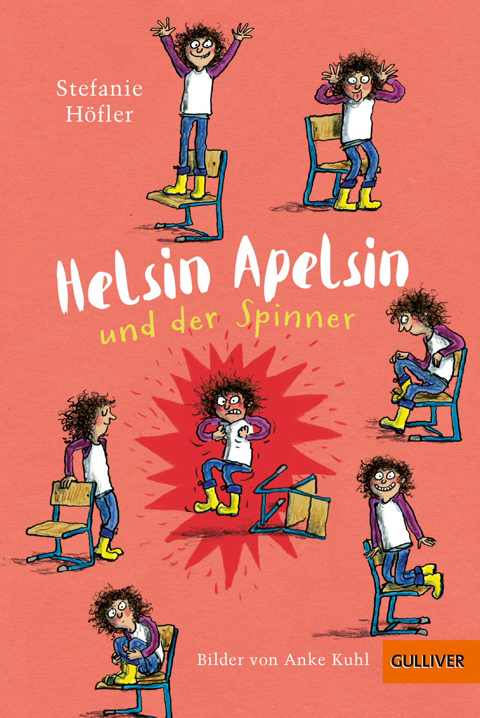 Helsin ist eigentlich immer gut gelaunt. Bis auf die Momente, wo ihr etwas nicht passt und die Wut in ihr kocht. Da hat sie einen Spinner. Wie an dem Tag, als Louis neu in die Klasse kommt, »Helsin, Apelsin« in ihr Ohr murmelt und sie ihm auf die Nase haut. So fängt alles an. Dann hat Helsin eine dumme Idee und klaut aus Rache Louis‘ Fidschileguan. Jetzt hat sie ein dickes Problem. Eine Geschichte für Kinder ab 8 Jahren, mit Illustrationen von Anke Kuhl.