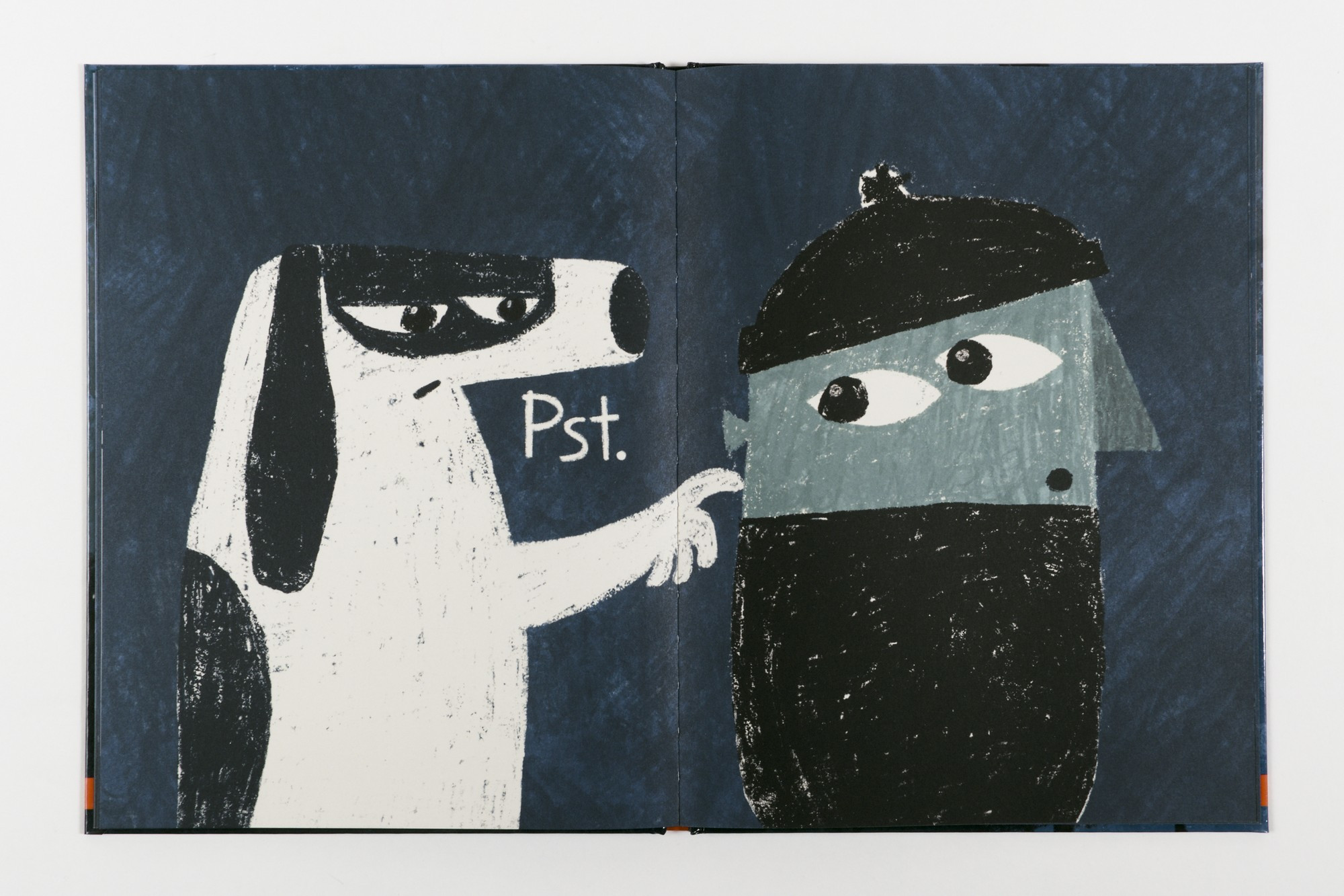 Leise schleicht sich der Dieb ins Haus und packt alles, was nicht niet- und nagelfest ist, in seinen großen Sack. Eben noch war die Vase da, jetzt ist sie weg. Schwupps, schon ist auch der Teddy verschwunden. Doch als der Dieb die fette Wurst aus dem Kühlschrank stibitzen will, ist Schluss. Denn einer im Haus hat sehr gute Ohren und eine feine Nase ...
