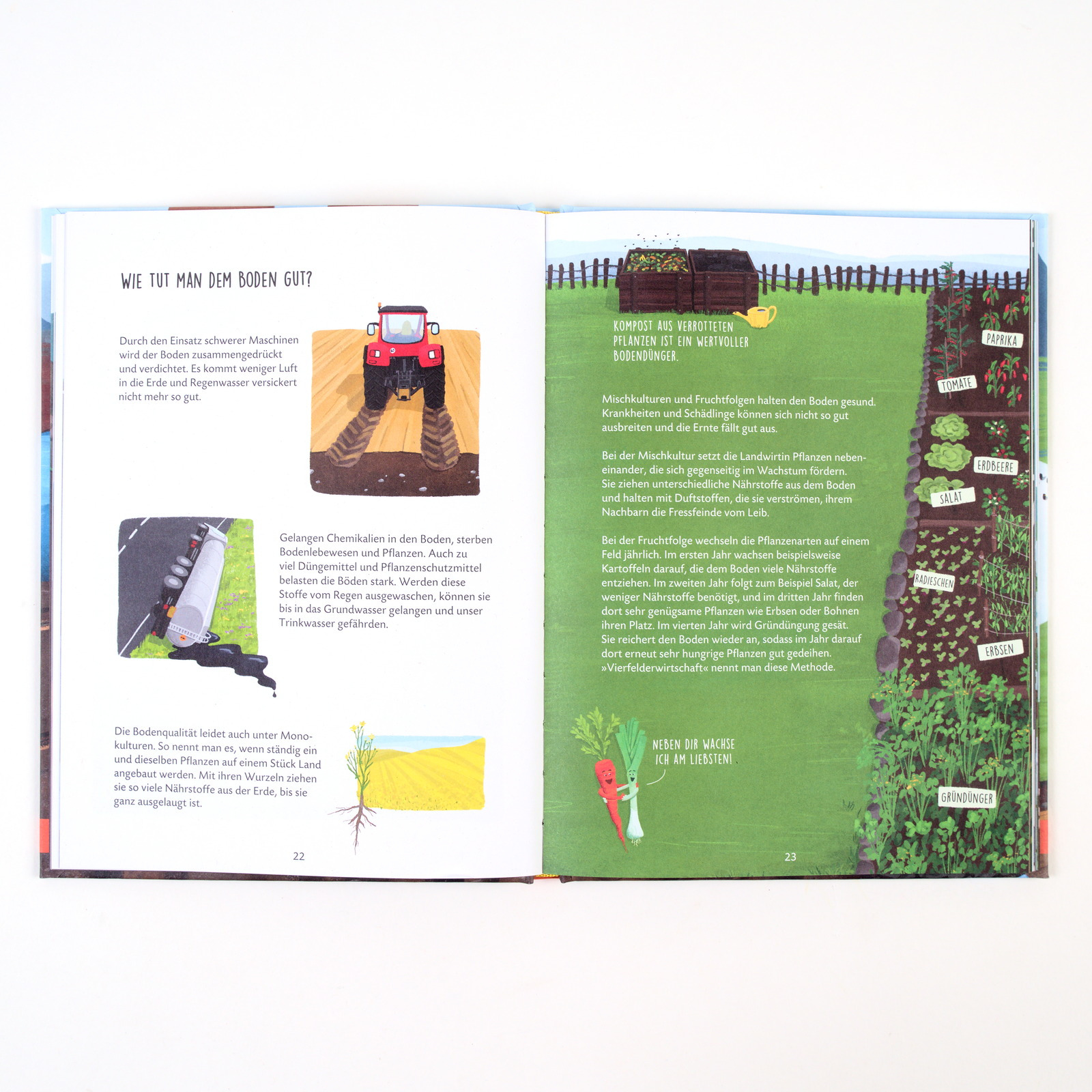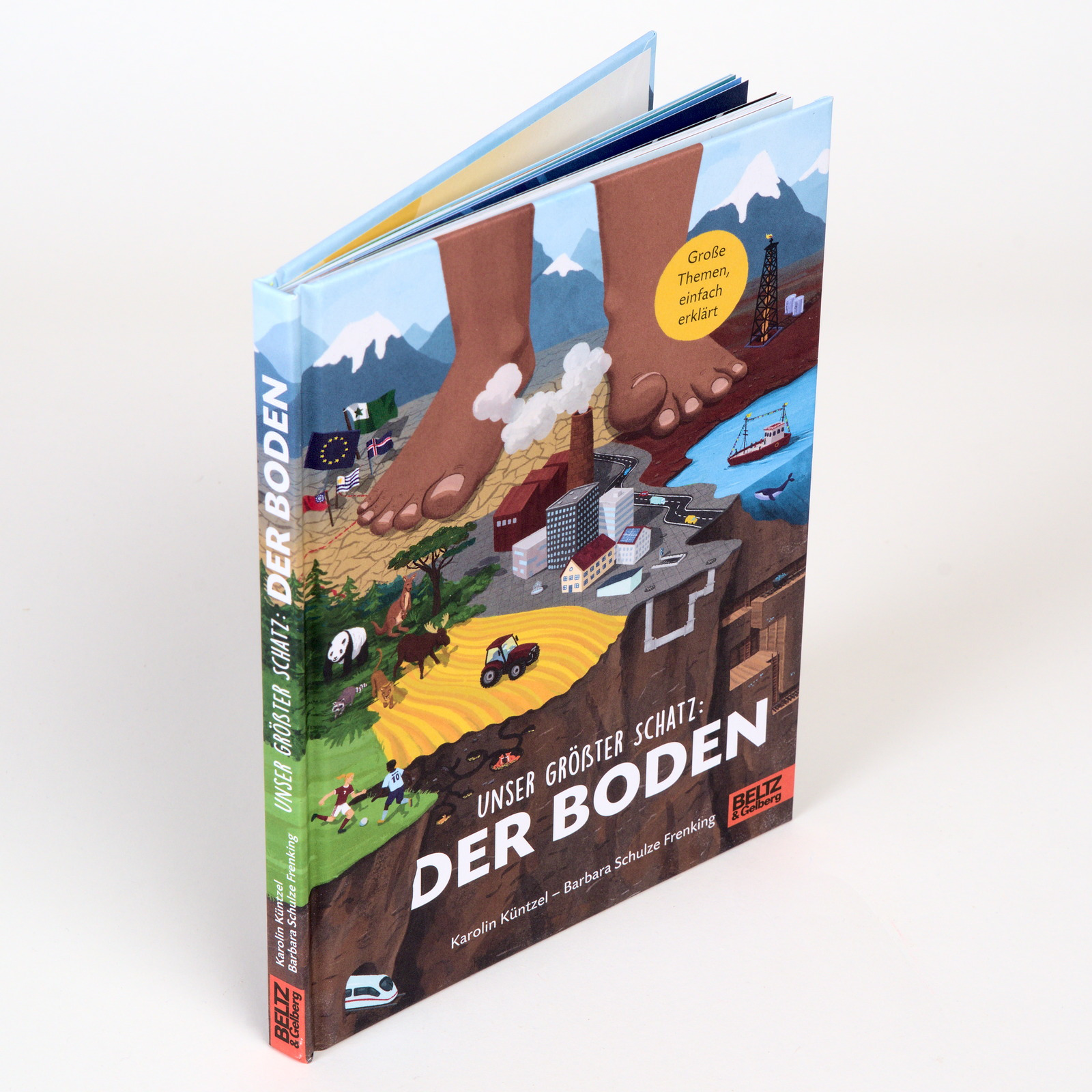 Der Boden ist immer da, ganz selbstverständlich. Wir können auf ihm springen oder hüpfen, ihn wütend mit den Füßen stampfen oder uns gemütlich darauflegen, um die Wolken zu beobachten. Selten denken wir über ihn nach. Dabei ist er unsere Lebensgrundlage: Er filtert und speichert Wasser, beherbergt Rohstoffe und unzählige Lebewesen – es werden sogar Kriege um ihn geführt. Dieses umfangreich und anschaulich bebilderte Buch erklärt Kindern, warum der Boden für Klimaschutz und Biodiversität so wichtig ist und zeigt, dass wir ihn fürs (Über-)leben brauchen.