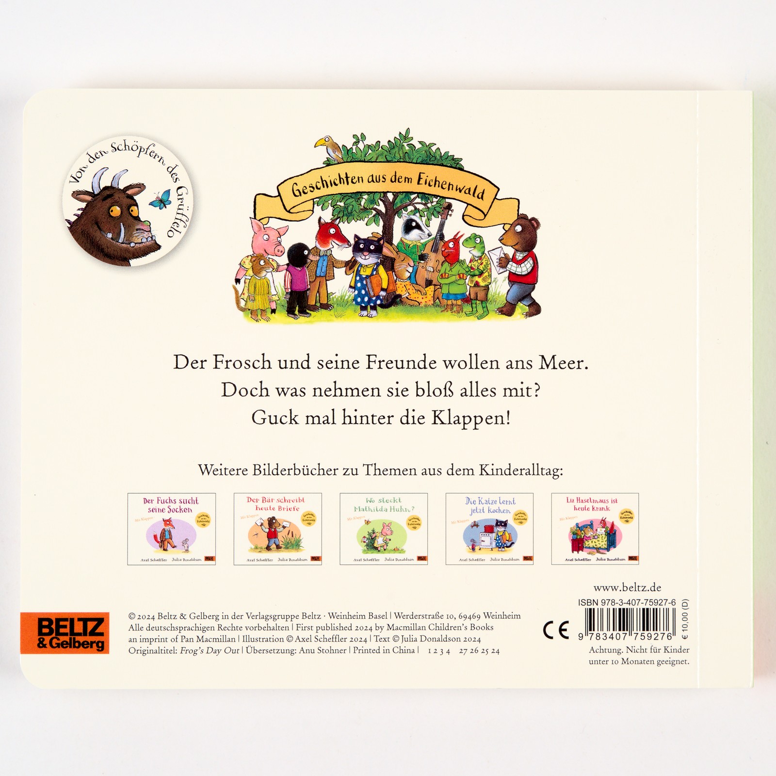 »Das Erfolgsduo Julia Donaldson und Axel Scheffler begleitet die bunte Tiertruppe mit gewohnt fröhlichen Reimen und witzigen,…«