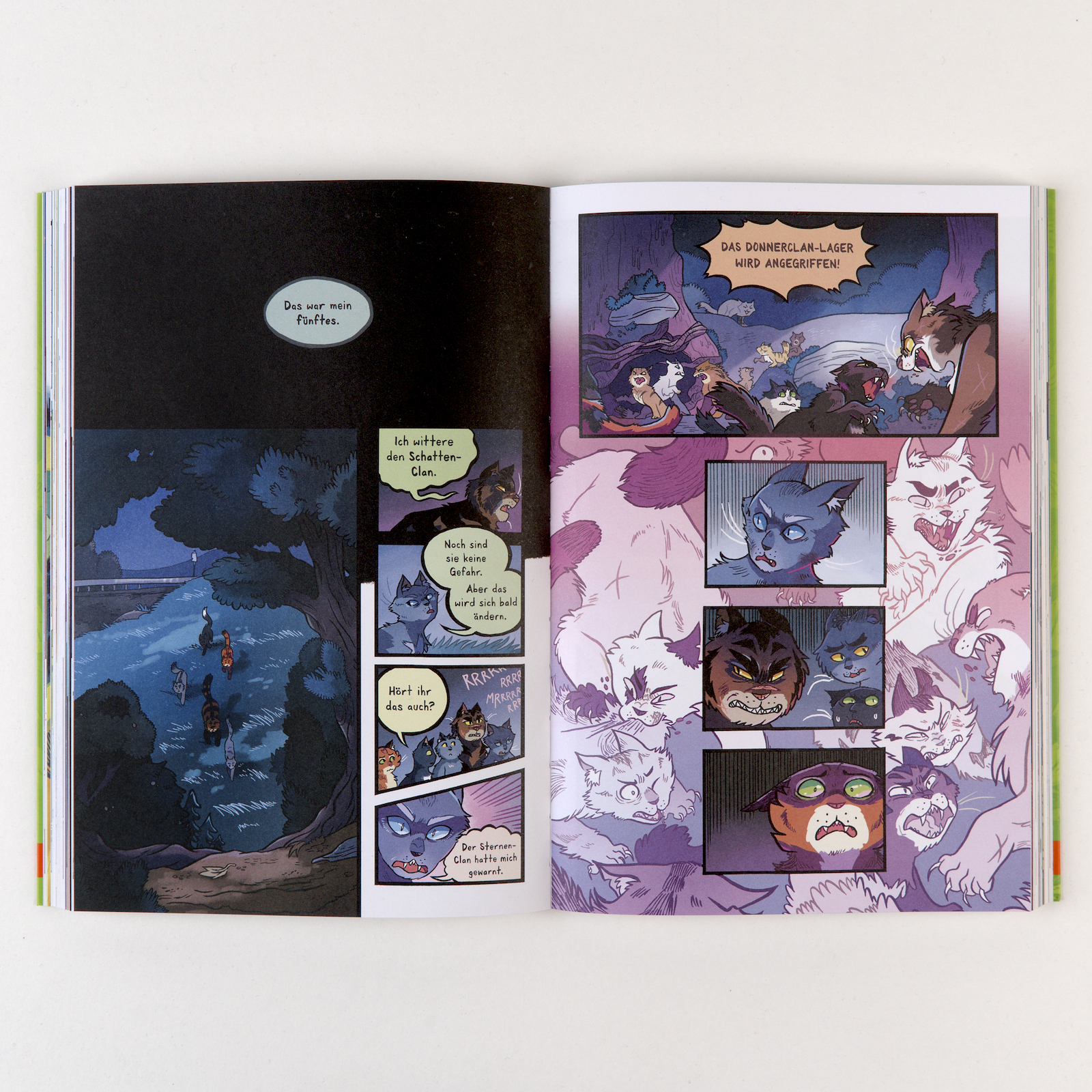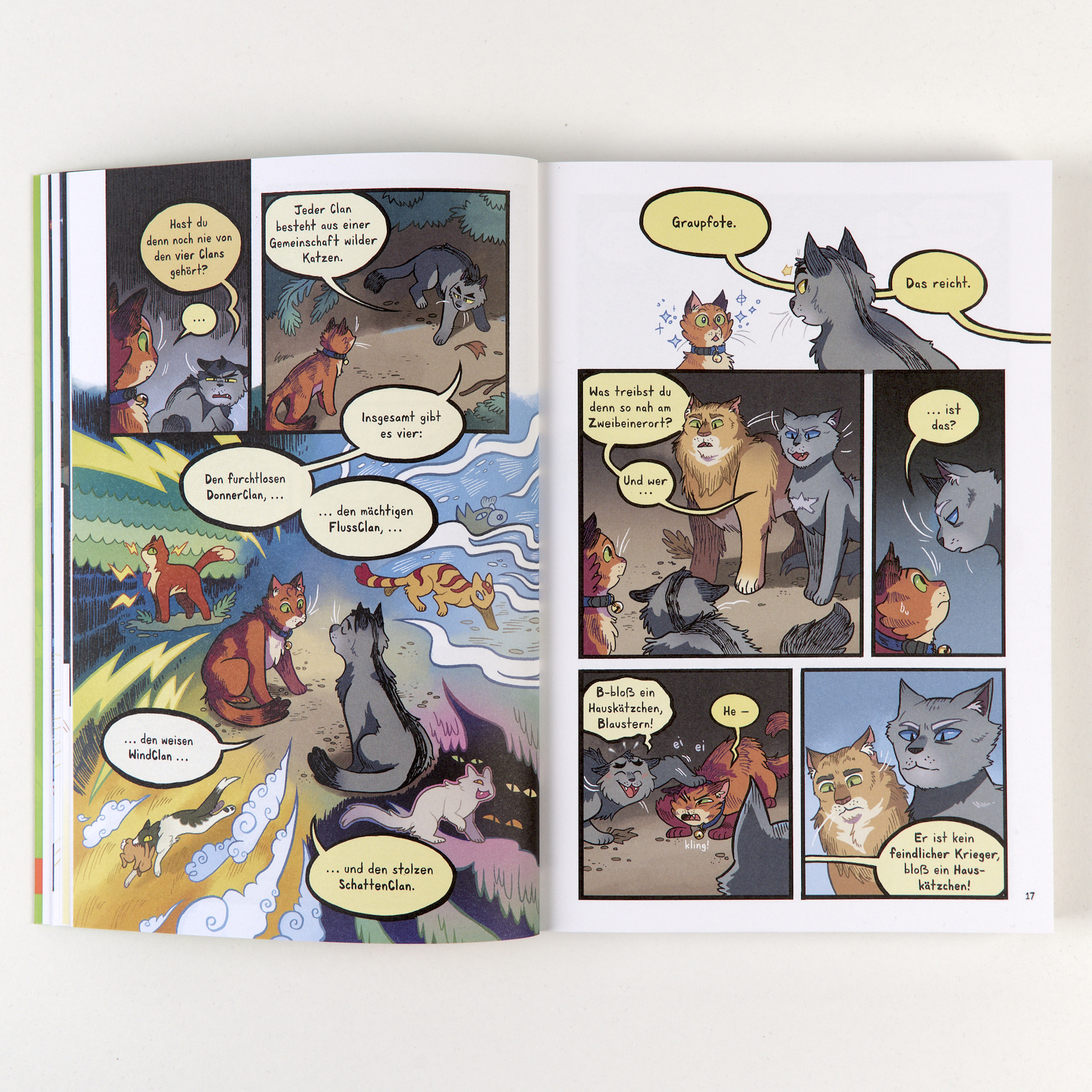 Die Bestseller-Reihe Warrior Cats wird als Graphic Novel adaptiert – in drei Bänden erzählt sie die Geschichte der ersten Staffel neu: Wilde Illustrationen mit leuchtenden Farben und energiegeladenen Linien erwecken ihre Welt zum Leben.