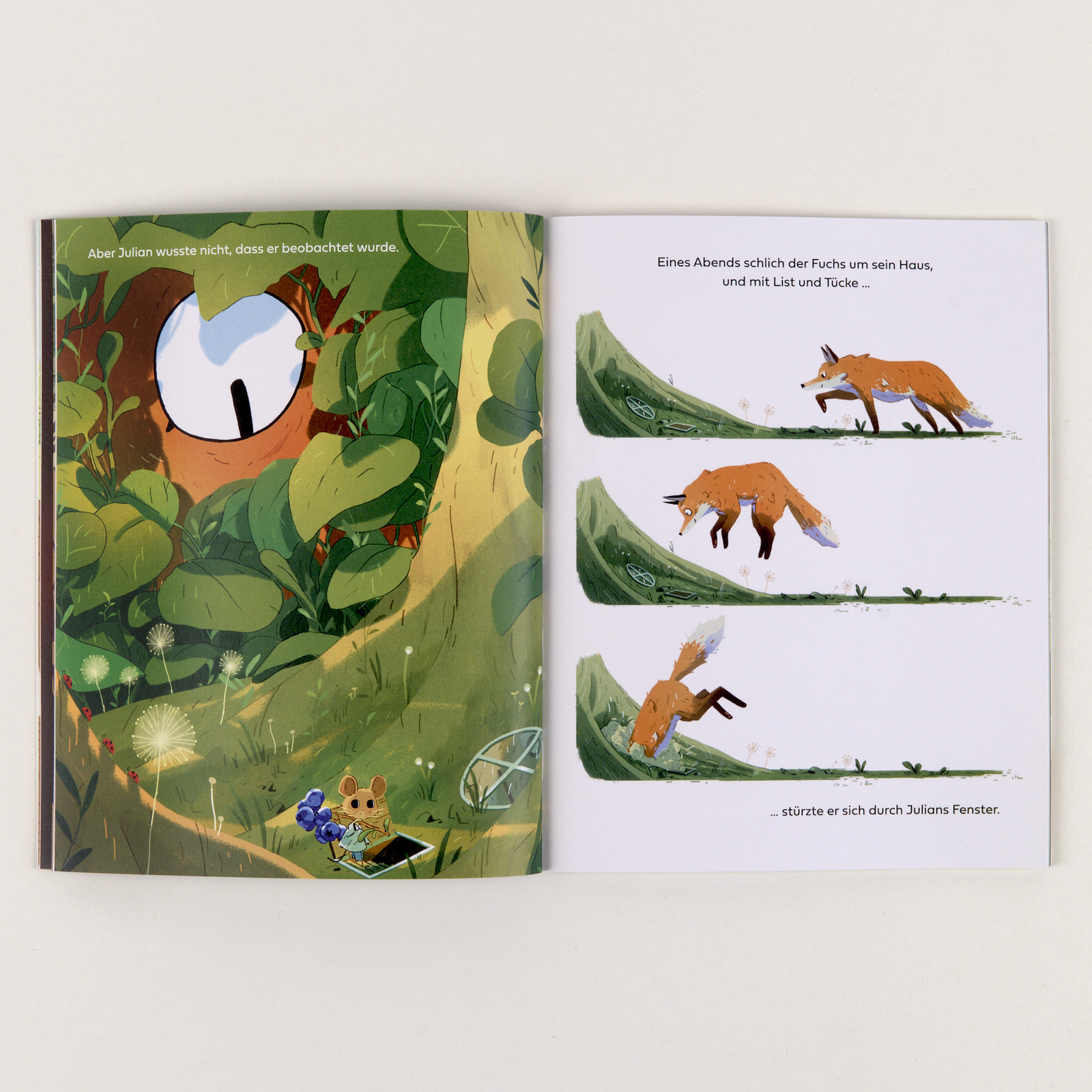 Die Maus Julian führt ein zurückgezogenes Leben – bis sich ein Fuchs in seine Höhle stürzt und kopfüber stecken bleibt. Alle Befreiungsversuche scheitern, also machen die beiden das Beste aus der Situation: Sie teilen Julians Vorräte und plaudern die ganze Nacht – und stellen fest, dass es gemeinsam eigentlich ganz schön ist.