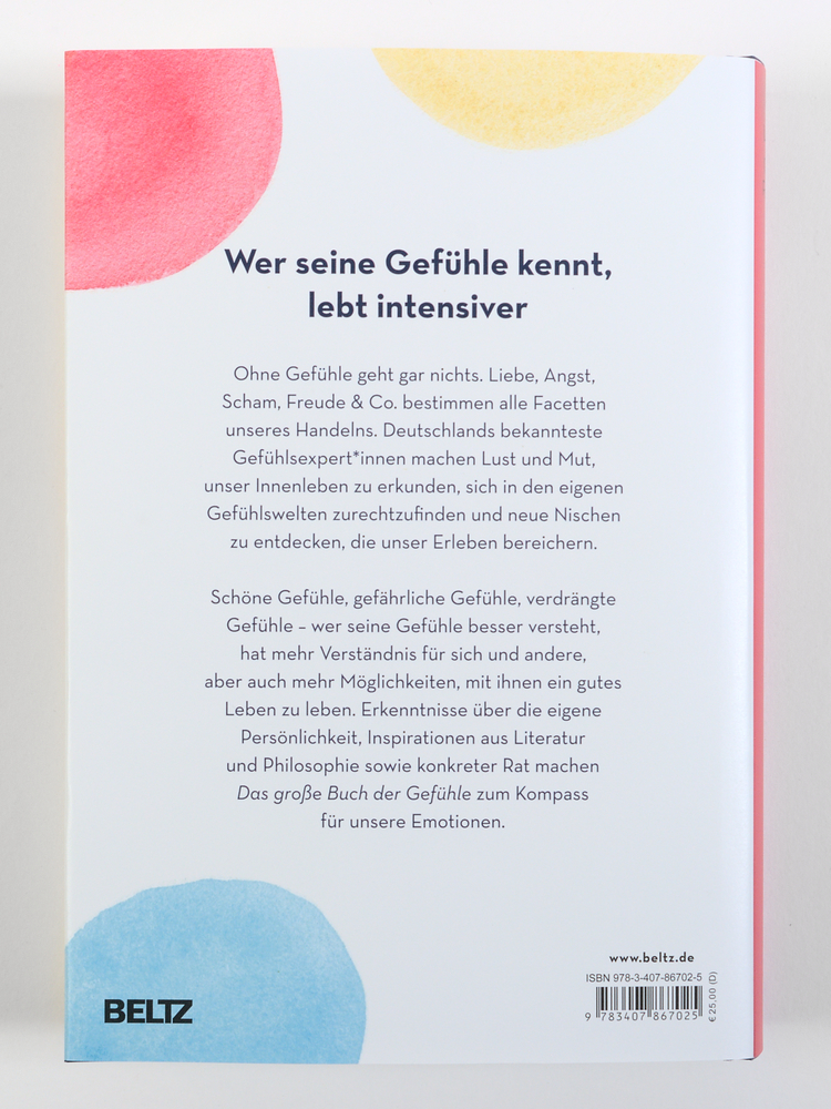 Einfühlsam und warmherzig geschrieben, stellen die beiden erfahrenen Therapeut*innen alle wichtigen Gefühle vor. Sie erläutern ihren Sinn, ihren Nutzen, ihre Abgründe und wie wir bewusst mit ihnen leben. Rat, individuelle Anregungen und Fragebögen zu jedem einzelnen Gefühl machen »Das große Buch der Gefühle« zum Kursbuch für unsere Emotionen.