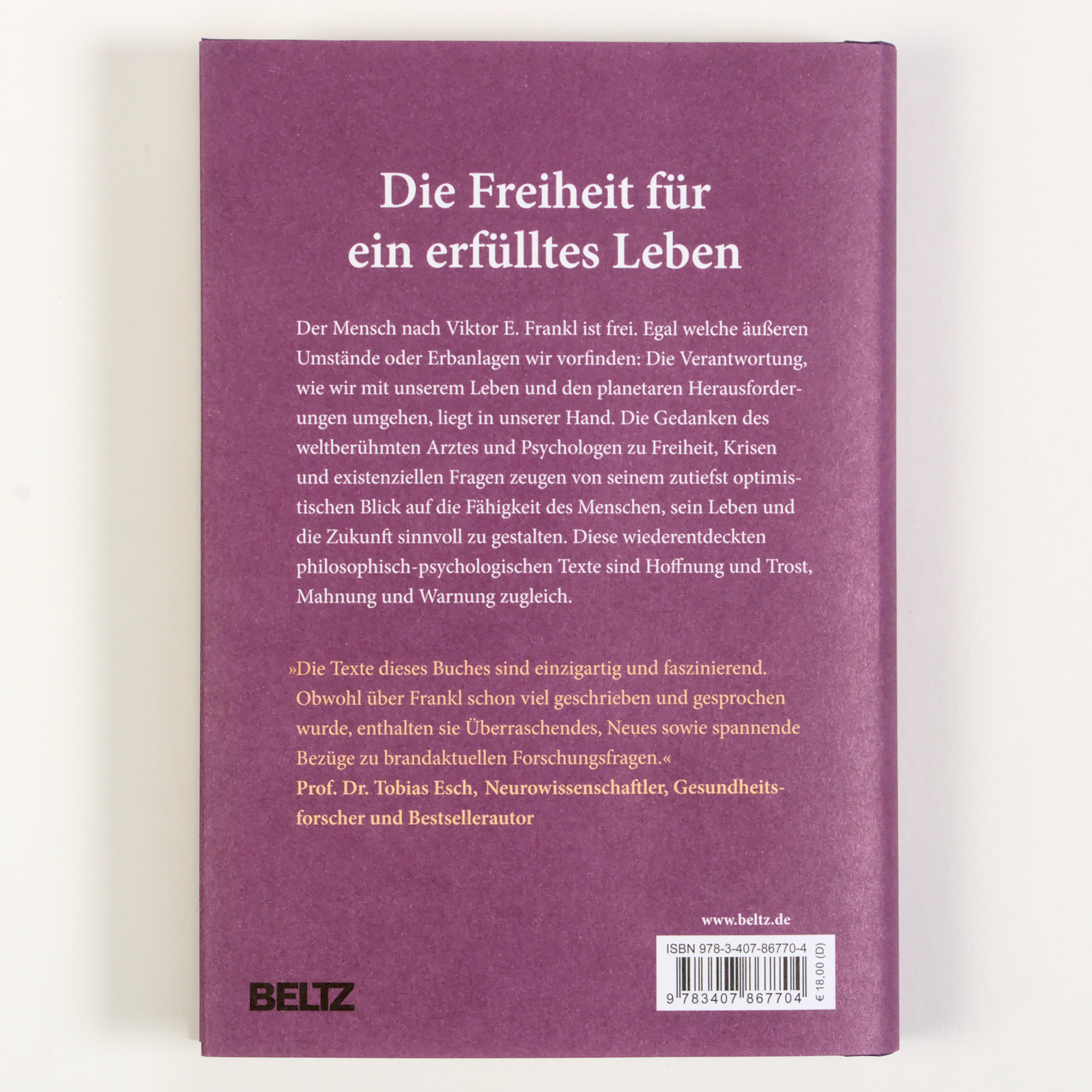 Drei der vier Texte wurden noch nie in einem Buch veröffentlicht. Es sind Gespräche und Vorträge aus dem Viktor Frankl-Archiv in Wien, die Frankls Denken über Freiheit, Sinn und Verantwortung anschaulich machen. Für Frankl-Kenner, aber vor allem auch für Frankl-Entdecker:innen. Diese zum Teil wiederentdeckten philosophisch-psychologischen Texte sind von großer Wucht, sie sind Hoffnung und Trost, Mahnung und Warnung zugleich.