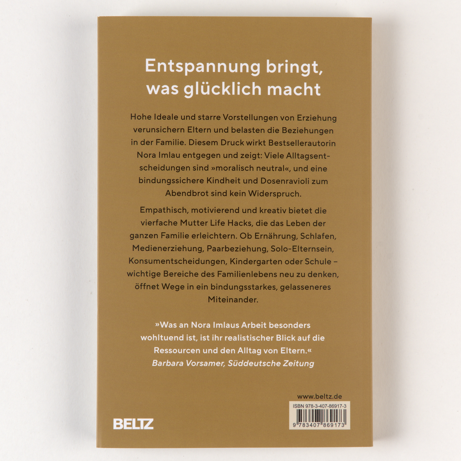 Hohe Ideale und starre Vorstellungen von Erziehung verunsichern Eltern und belasten die Beziehungen in der Familie. Diesem Druck wirkt Bestsellerautorin Nora Imlau entgegen und zeigt: Viele Alltagsentscheidungen sind »moralisch neutral«, und eine bindungssichere Kindheit und Dosenravioli zum Abendbrot sind kein Widerspruch. So unterstützt sie Eltern, ihr Familienleben pragmatisch und mit viel Großzügigkeit und Lebensfreude zu gestalten und sich von der Idee zu lösen, auch die eigenen Kraftquellen noch moralisch bewerten zu wollen.